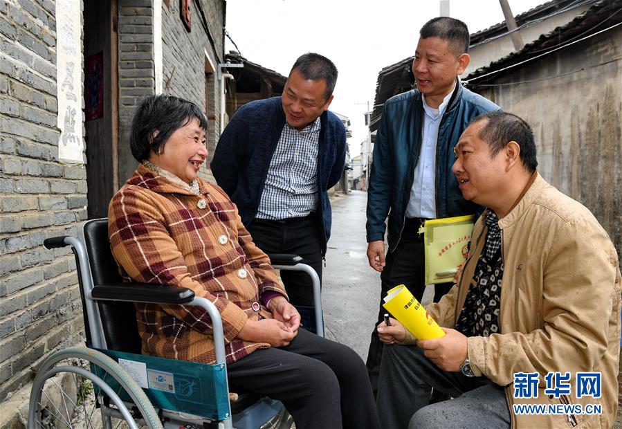 11月15日,建瓯市扶贫办工作人员(右一)和镇纪委干部(右二)在贫困户谢拾俤家中核实扶贫政策落实情况。