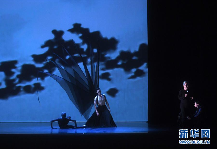 11月15日,林怀民(右二)在彩排记者会上介绍舞蹈。