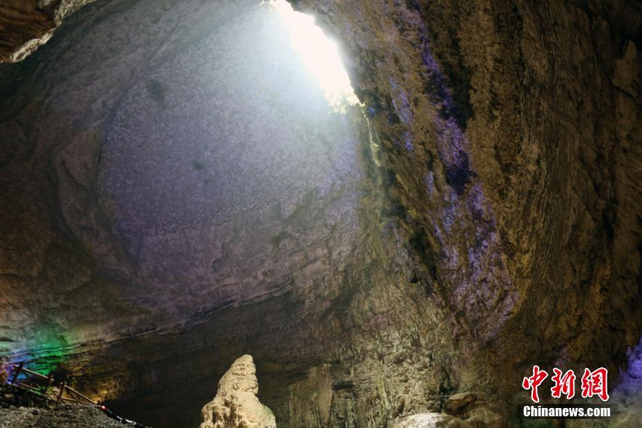兴文石海位于四川省宜宾市兴文县境内,处于四川盆地与云贵高原过渡地带,总面积约156平方公里,是世界地质公园、国家级风景名胜区。其中最著名的景观是天坑。地质公园包括4个园区:以天泉洞为代表的200多个大小溶洞组成的洞穴群小岩湾地质园区;以自然生态著称,汇聚了峡谷、瀑布、湖泊、溶洞、古僰人遗址等多种地质遗迹景观的僰王山园区;形成于距今4.9亿年的奥陶纪,古石林、千年银杏、溶洞群、翠竹林海相伴相生的太安石林;桫椤树掩映着凌霄僰人遗址的凌霄城园区。天泉洞是兴文石海洞穴群中著名的一个溶洞,形成地质年代距今三百万年,其规模宏大,为多层长廊和厅状地下岩溶洞穴,洞道总长近5公里,有上下四层洞穴、大小支穴近百个,著名景观有“穹庐广厦”、“天泉明宫”、“泻玉流光”、“云步通幽”、“石花奇观”、“长廊石秀”、“石林仙姿”等。 中新社记者 任海霞 摄