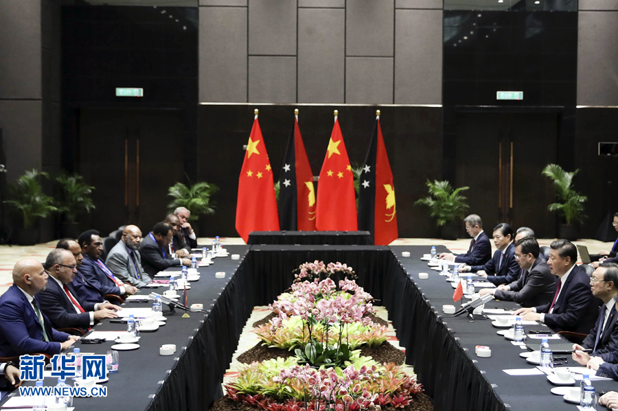 11月16日,国家主席习近平在莫尔兹比港同巴布亚新几内亚总理奥尼尔会谈。 新华社记者 丁林 摄