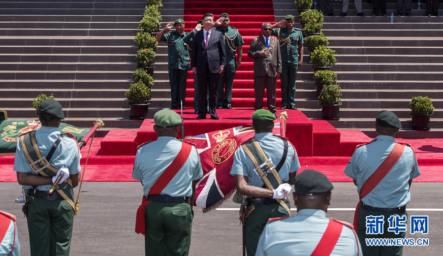 11月16日,国家主席习近平在莫尔兹比港会见巴布亚新几内亚总督达达埃。会见开始前,达达埃在议会大厦前广场为习近平举行隆重欢迎仪式。新华社记者 费茂华 摄