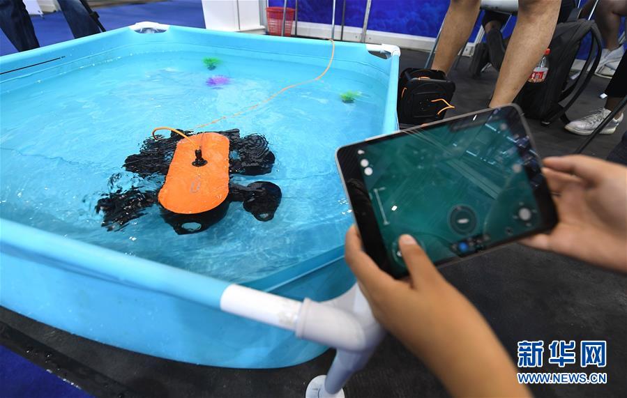 11月16日,工作人员在展示一款智能“水下无人机”。这款“水下无人机”搭载4K摄像头,配备6个推进器,可以实现自平衡悬停。正在深圳举行的第二十届中国国际高新技术成果交易会上,众多体现“黑科技”的产品纷纷亮相,吸引观众参观体验。新华社记者 毛思倩 摄