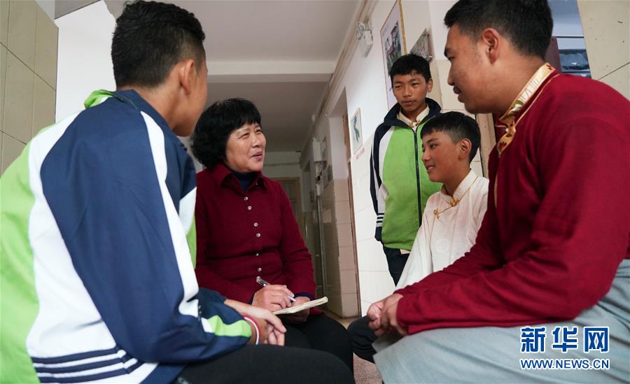 11月16日,刘和平(左二)与南昌市第十七中学西藏班学生聊天。新华社记者 胡晨欢 摄