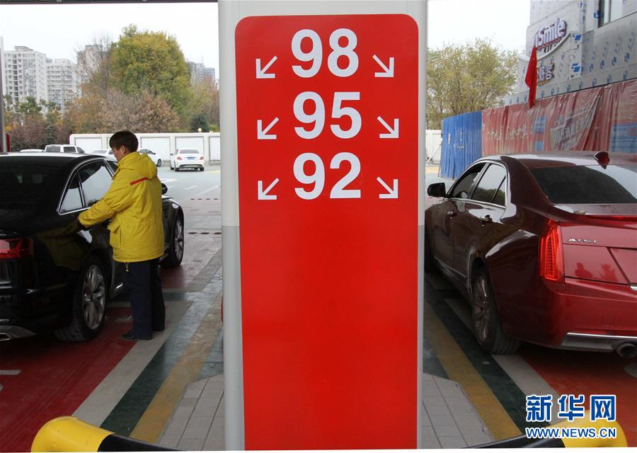 11月16日,河北省邯郸市一加油站的工作人员准备给车辆加油。