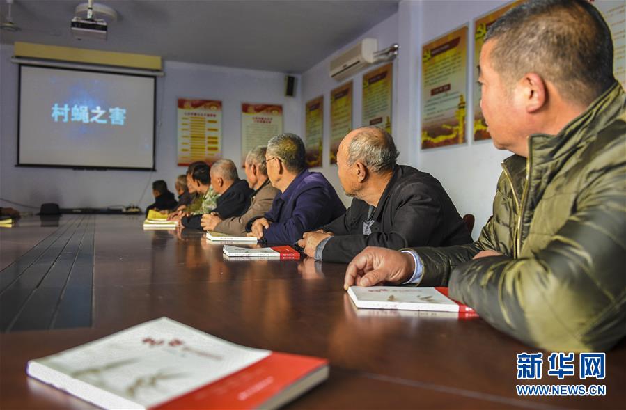 11月16日,景县留智庙镇白草洼村“两委”干部及党员集体观看警示教育片。今年以来,河北景县针对基层农村换届后“两委”干部人员变动大的情况,通过讲党课、组织观看警示教育片、发放廉政教育资料、重温入党誓词等多种方式,教育引导村干部讲纪律、立规矩、树正气。新华社记者 李晓果 摄