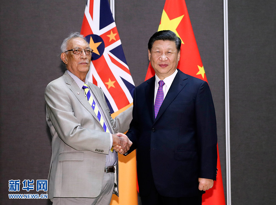 11月16日,国家主席习近平在莫尔兹比港分别会见建交太平洋岛国领导人。这是习近平会见纽埃总理塔拉吉。 新华社记者 丁林 摄