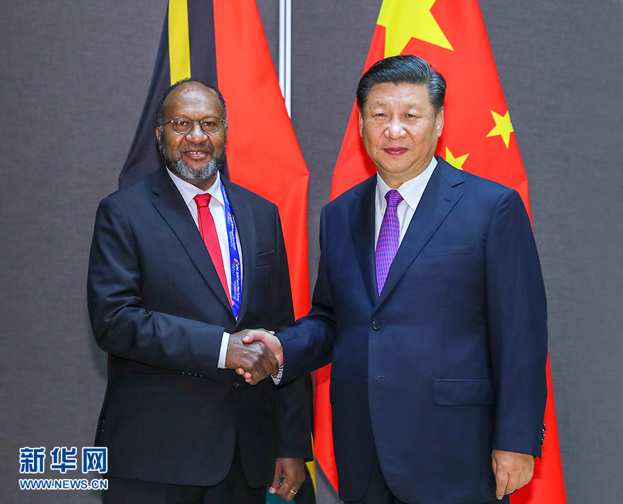 11月16日,国家主席习近平在莫尔兹比港分别会见建交太平洋岛国领导人。这是习近平会见瓦努阿图总理萨尔瓦伊。 新华社记者 谢环驰 摄