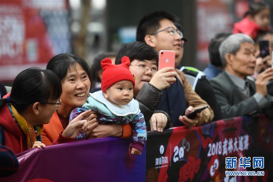 11月17日,市民在杭州延安路沿途观看“武林大巡游”。新华社记者黄宗治摄