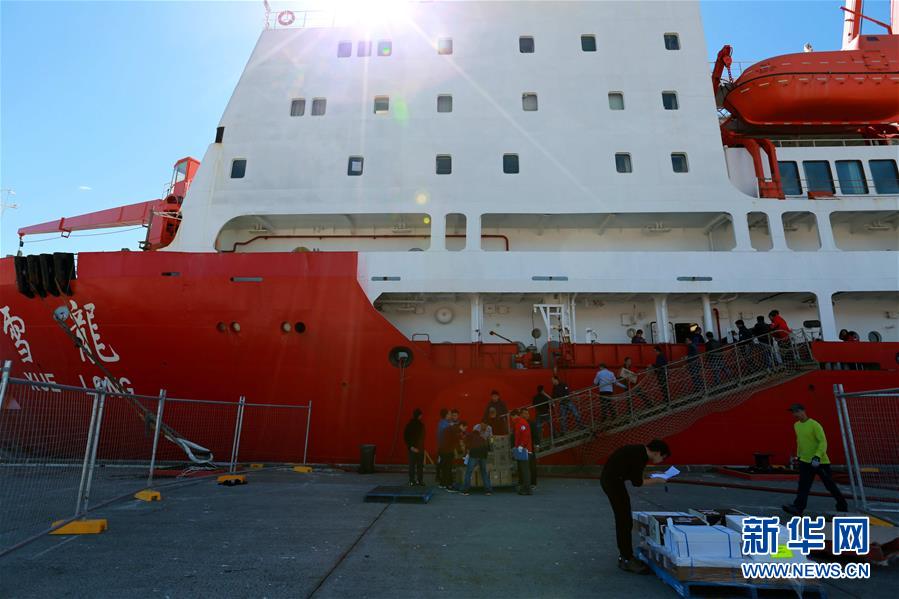 11月17日,“雪龙”号极地考察船停靠澳大利亚霍巴特港进行入南极前的最后一次物资补给。 搭载着中国第35次南极考察队队员的“雪龙”号极地考察船当地时间17日上午停靠澳大利亚霍巴特港,进行物资补给,这是“雪龙”号进入南极前的最后一次补给。 新华社记者 刘诗平 摄