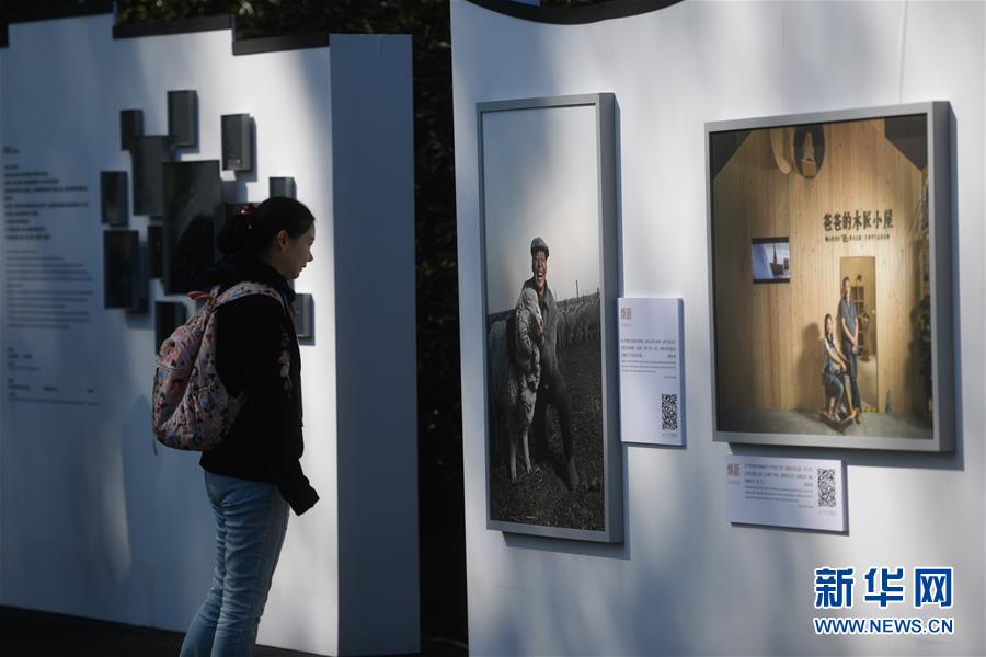 观众在乌镇观看“暖——互联网改变的100张面孔”图片展(11月9日摄)。新华社记者 黄宗治 摄
