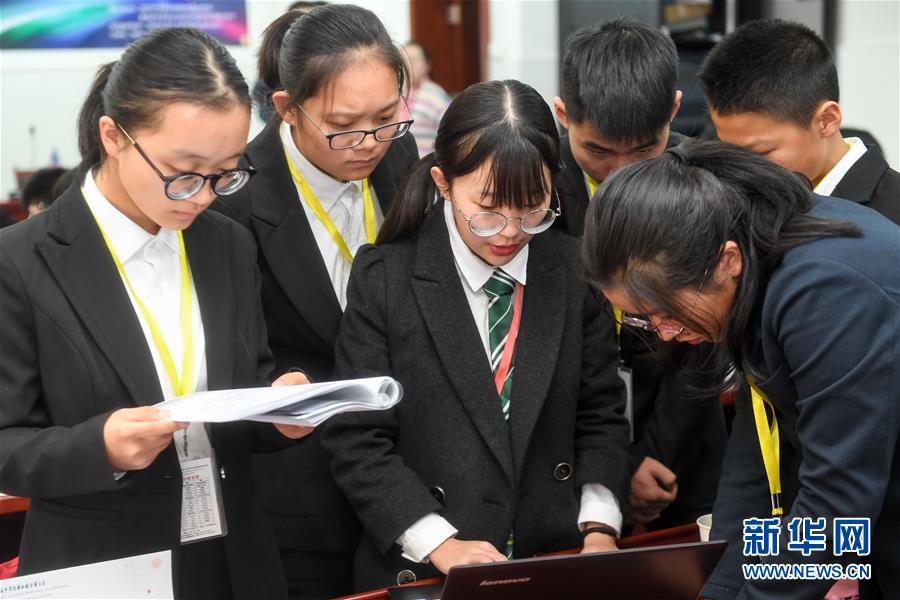 11月17日,在合肥市第八届中学生模拟联合国大会上,中学生代表在讨论。 新华社记者 张端 摄