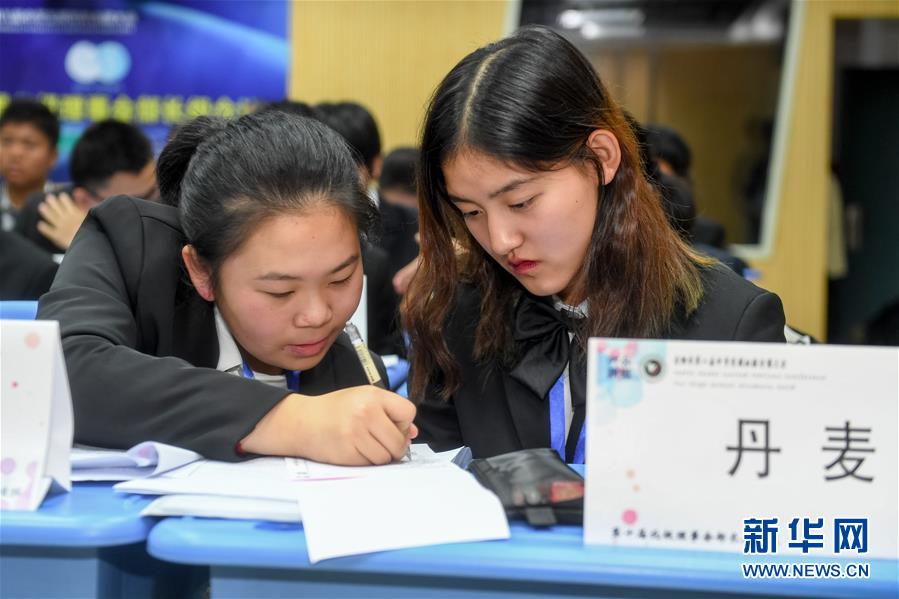 11月17日,在合肥市第八届中学生模拟联合国大会上,中学生代表在交流。 新华社记者 张端 摄