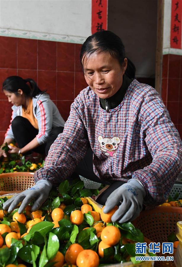 11月17日,平乐县沙子镇渡河村村民在分拣砂糖橘。 新华社记者 陆波岸 摄