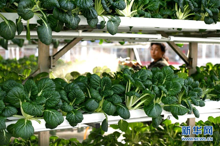 11月16日,在石家庄市鹿泉区中以农科小镇,员工对温室蔬菜进行管护。 初冬时节,农民们忙着管护、收获各类农作物,田间地头、温室大棚内一片忙碌。 新华社发(陈其保 摄)