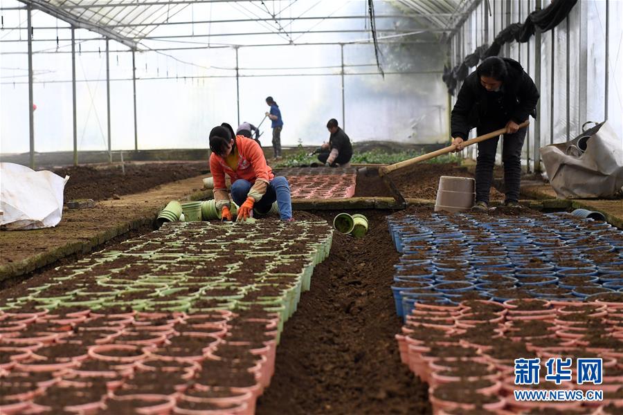 11月17日,在贵州省仁怀市苍龙街道一农业观光园,村民在大棚里劳作。 初冬时节,农民们忙着管护、收获各类农作物,田间地头、温室大棚内一片忙碌。 新华社发(陈勇 摄)