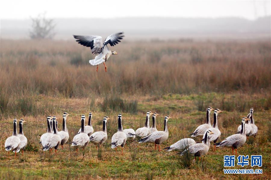 11月17日拍摄的三门峡黄河湿地的白天鹅。 近日,大批白天鹅从西伯利亚迁徙到河南省三门峡市黄河湿地栖息越冬,形成一幅宁静和谐的美丽画卷。 新华社记者 朱祥 摄
