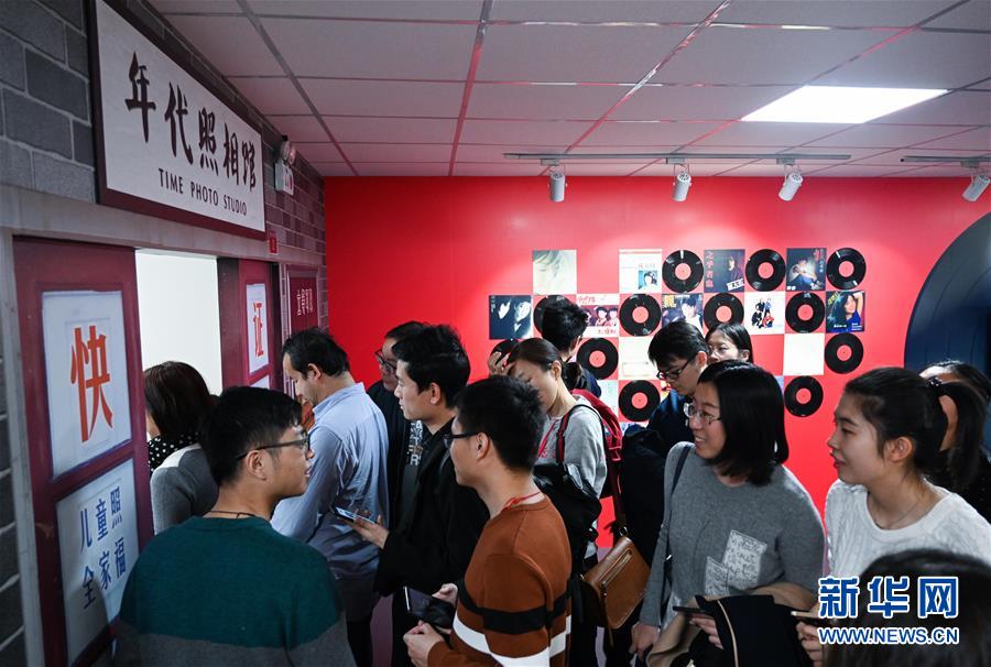 11月17日,观众在展览上的“时光博物馆”内排队体验年代照相馆。 新华社记者 陈晔华 摄