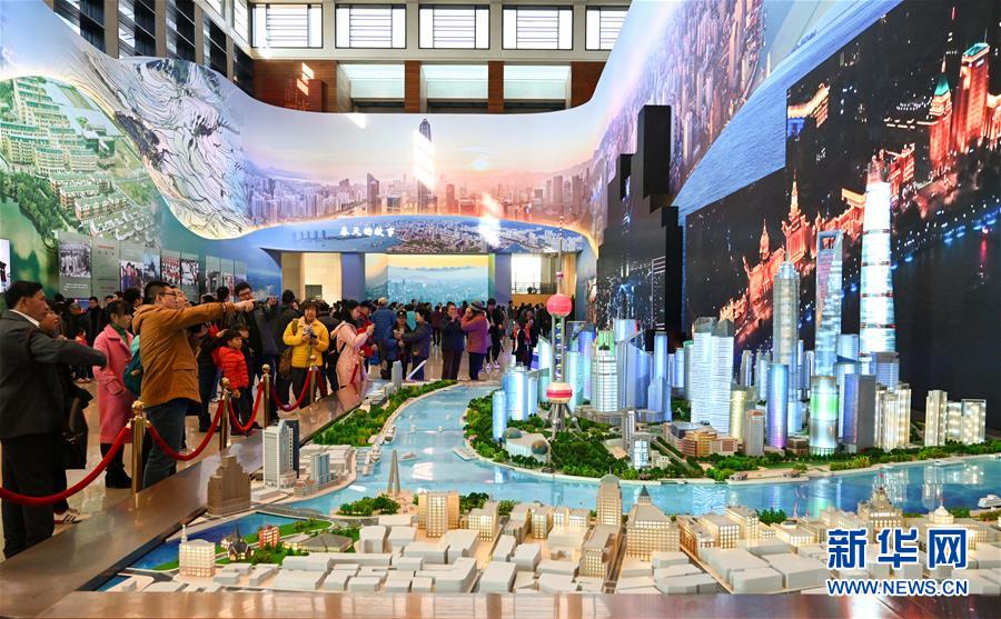 11月17日,观众在展览上参观上海陆家嘴的沙盘模型。新华社记者 陈晔华 摄