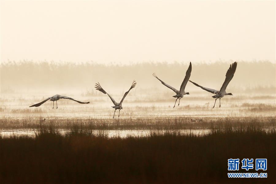 这是11月17日在草海国家级自然保护区拍摄的黑颈鹤。新华社发(王纯亮 摄)
