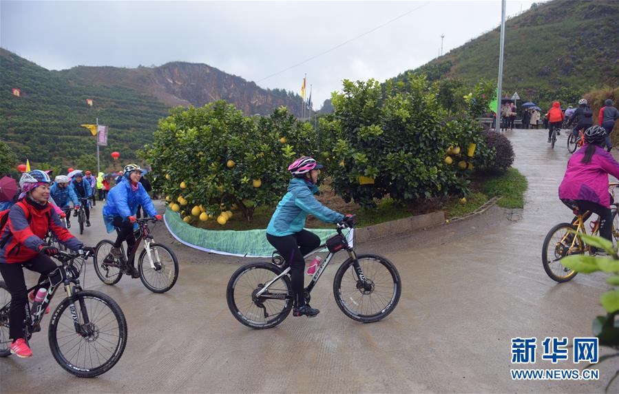 11月18日,游客在宣恩县贡水白柚文化节上参加柚园骑行活动。 当日,湖北省恩施土家族苗族自治州宣恩县举行贡水白柚文化节,柚农们载歌载舞,与客商、游客共庆丰收。 新华社发(王俊 摄)