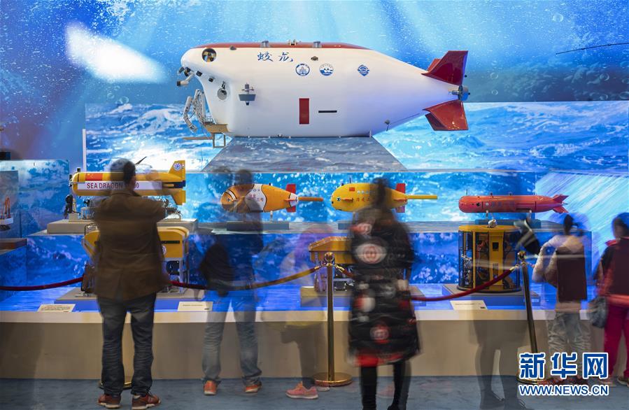 11月18日,观众在观看“蛟龙”号载人潜水器等模型(慢门拍摄)。“伟大的变革——庆祝改革开放40周年大型展览”11月13日在国家博物馆隆重开幕。自开幕以来,展览吸引了众多参观者。截至11月18日,累计参观人数超过19万人。新华社记者 才扬 摄