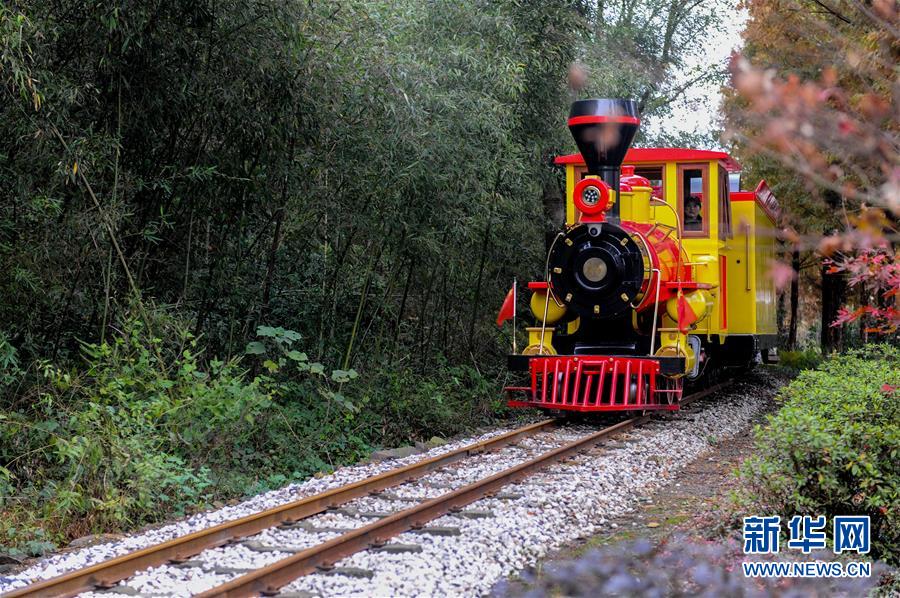 11月17日在浙江省安吉县鲁家村拍摄的一列观光小火车。