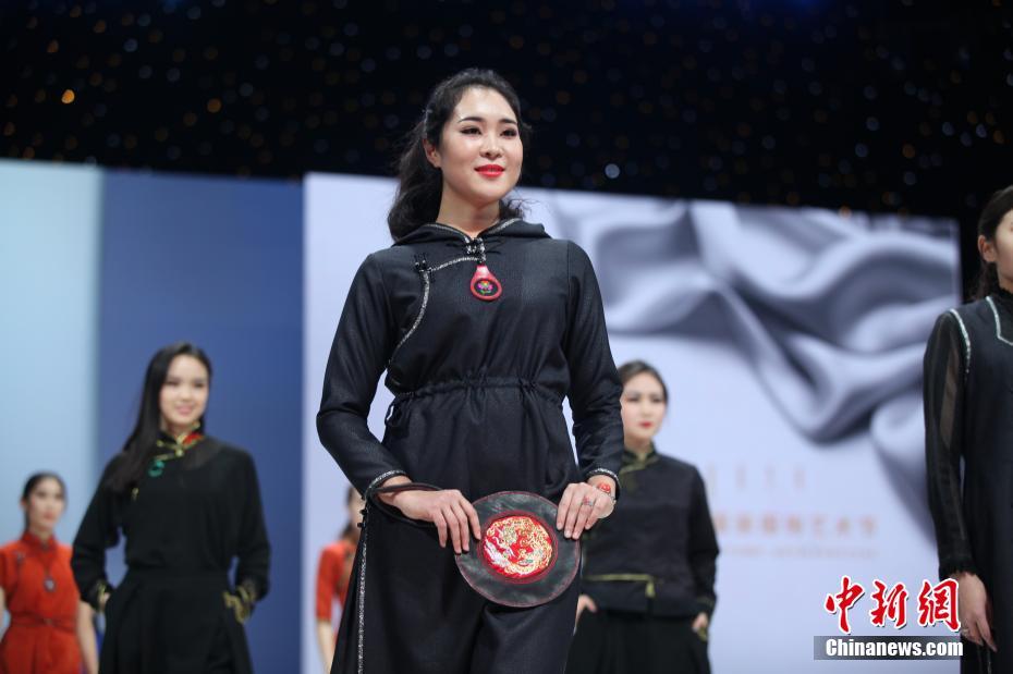 11月20日,赤峰蒙古族休闲生活装进行“T台秀”展示。当日,“第十五届蒙古族服装服饰艺术节”总决赛休闲装比赛正在内蒙古呼和浩特市如火如荼地进行,这个走过14年历程的经典赛事活动,逐步让来自“远古”的28个蒙古族部落文化之美走出草原,走向国际。中新社记者 郭伟伟 摄