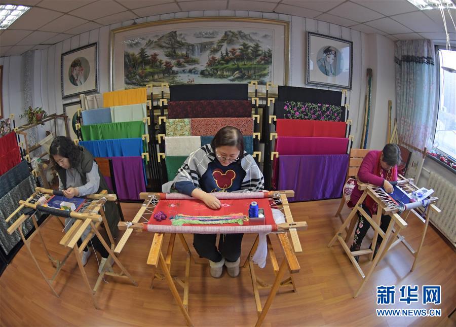 11月23日,绣娘在盛京满绣工作室工作。新华社记者杨青摄