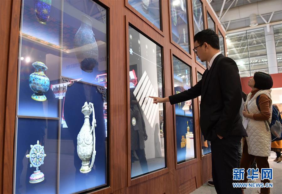 11月23日,几位观众正在操作3D虚拟文物的互动展示。 新华社记者 李贺 摄