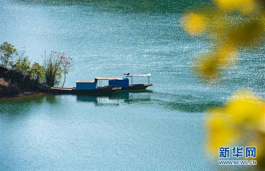 11月23日,两只小船停泊在湖北宜昌三峡大坝上游西陵峡一带水域。 新华社发(雷勇 摄)