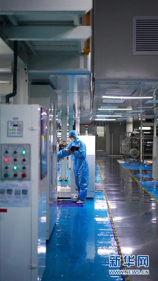 在井冈山产业园生产光学膜的江西蓝海芯科技集团,工人在车间检测产品(11月21日摄)。新华社记者 胡晨欢 摄