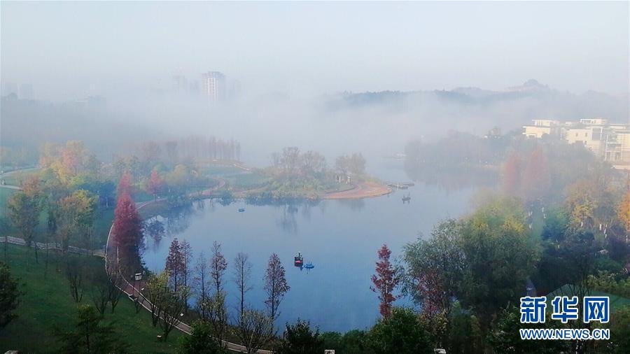 这是11月26日在贵阳市观山湖区阅山湖公园内拍摄的雾景。新华社记者 刘续 摄