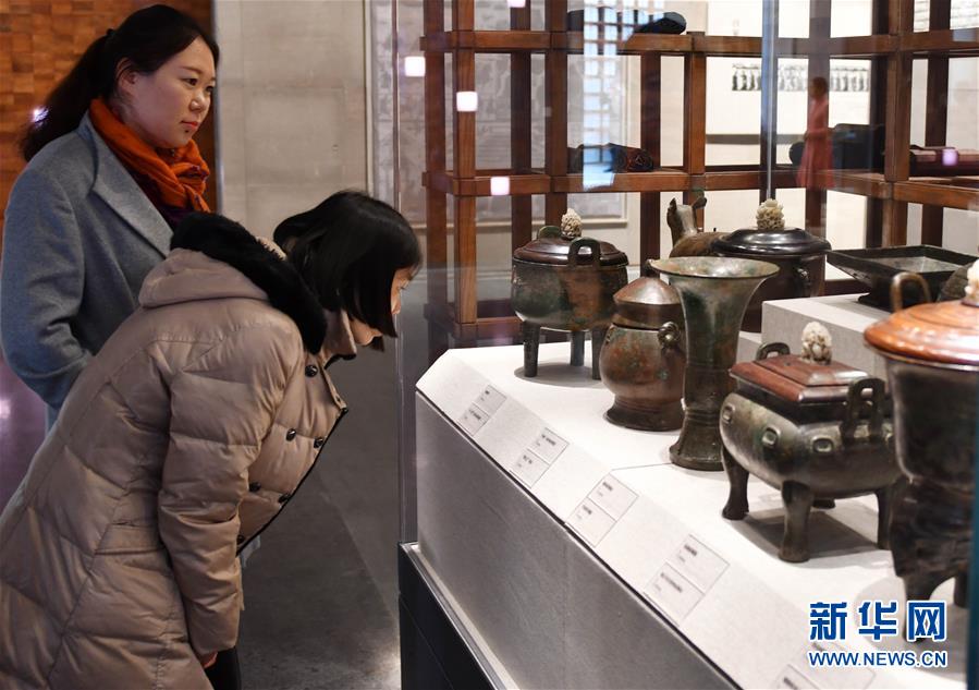 11月26日,参观者在孔子博物馆内参观。 当日,耗时5年建成的孔子博物馆在孔子故里山东曲阜开馆试运行,首批2000多件文物搬出孔府文物档案馆,入住孔子博物馆,今后将有69万多件孔府文物逐批“乔迁新居”。 新华社记者 朱峥 摄