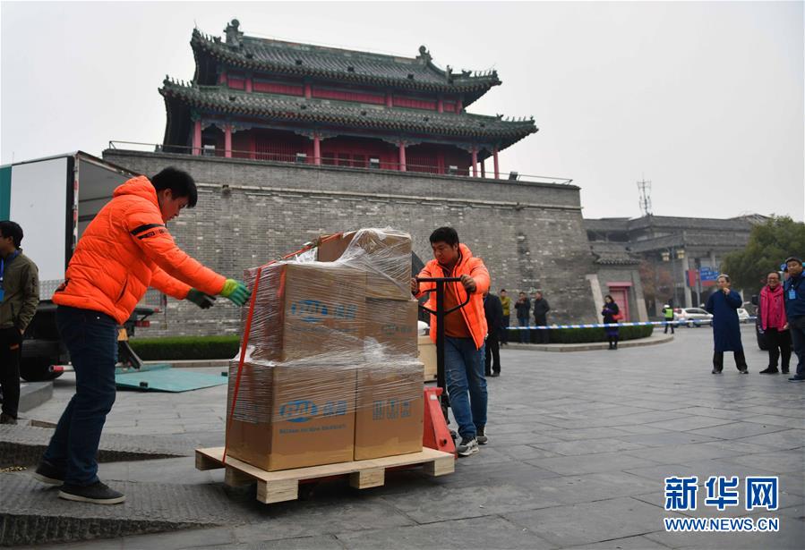 搬迁文物被护送出孔府文物档案馆(11月20日摄)。 11月26日,耗时5年建成的孔子博物馆在孔子故里山东曲阜开馆试运行,首批2000多件文物搬出孔府文物档案馆,入住孔子博物馆,今后将有69万多件孔府文物逐批“乔迁新居”。 新华社记者 朱峥 摄