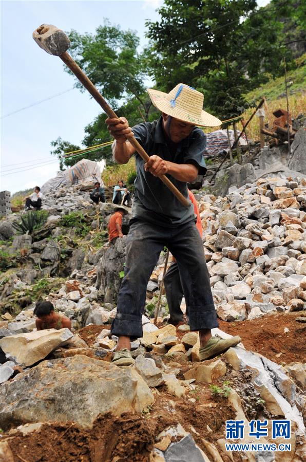 广西大化瑶族自治县瑶族群众在开山修建水渠(2011年8月20日摄)。 新华社记者张爱林摄