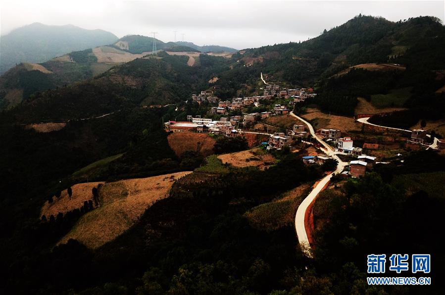 这是广西百色市右江区修建的进村道路(2018年3月7日无人机拍摄)。 新华社记者张爱林摄