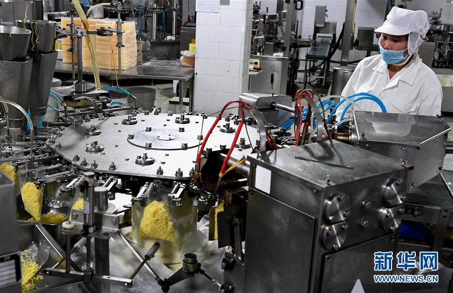 11月27日,工作人员在河南省临颍县一家方便面生产企业的车间内作业。近年来,河南省临颍县依托本地农副产品资源优势,把食品产业作为县域经济的主导产业,目前,该县拥有各类食品加工企业120多家,初步形成了产品种类齐全、产业链条完整的食品产业集群。新华社记者 李安 摄
