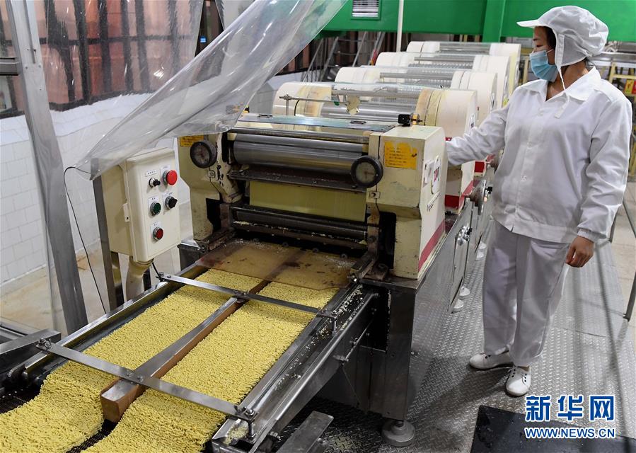 11月27日,工作人员在河南省临颍县一家方便面生产企业的车间内作业。近年来,河南省临颍县依托本地农副产品资源优势,把食品产业作为县域经济的主导产业,目前,该县拥有各类食品加工企业120多家,初步形成了产品种类齐全、产业链条完整的食品产业集群。新华社记者 李安 摄
