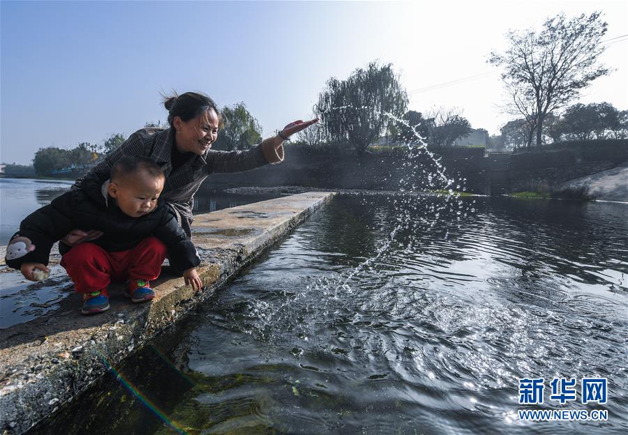 11月28日,月明村的村民在长丰涧溪水边嬉水。近年来通过实施河长制和水环境整治,长兴县夹浦镇月明村对长丰涧进行了清淤,对河两岸绿化进行了补植,修筑堰坝、蓄水引鱼,两岸种植花草,开辟河滩公园,实现了长丰涧景美、岸绿、水清、河畅的目标。 新华社记者 徐昱 摄