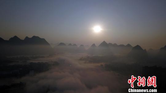 航拍广西大化平流雾景观 雾海缥缈宛若仙境