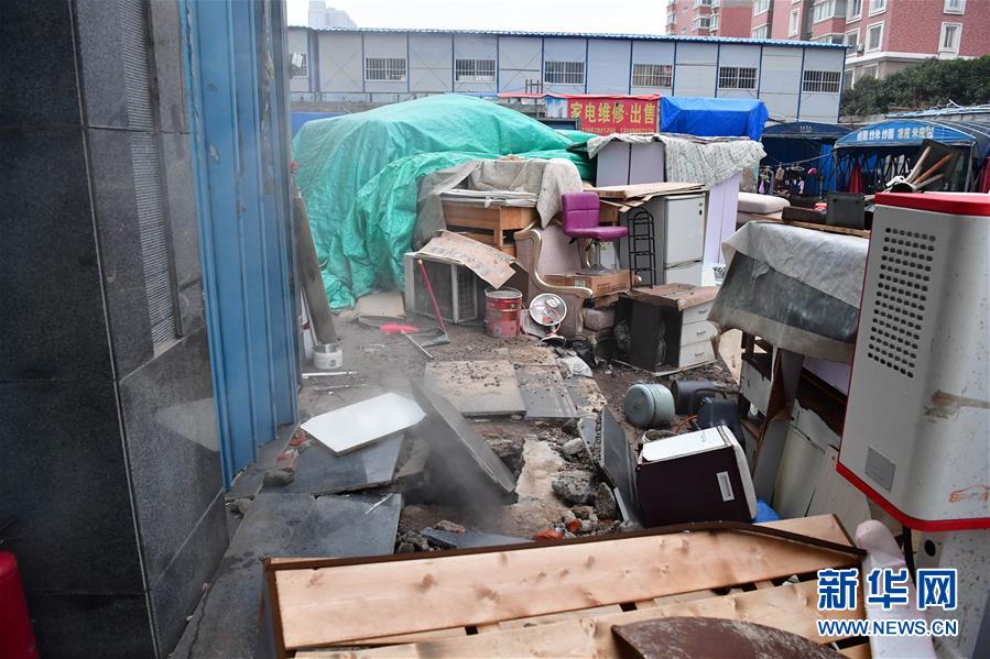 这是11月30日拍摄的郑州热力管网爆管现场,地板砖凸起处仍向外冒着热气。新华社记者冯大鹏摄