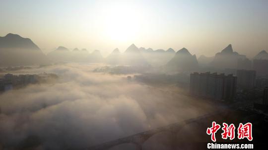 航拍广西大化平流雾景观 雾海缥缈宛若仙境