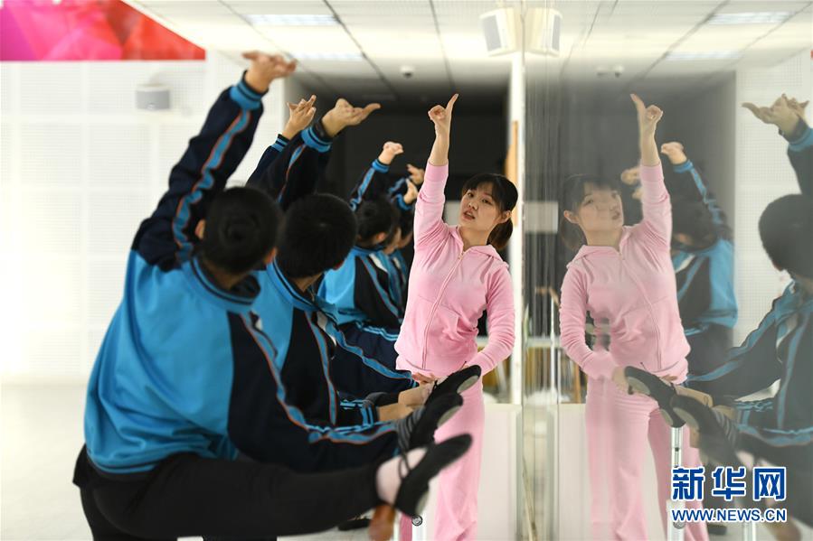 11月29日,在石家庄市特殊教育学校,特教舞蹈老师赵钰带领学生们进行热身训练。 赵钰是石家庄市特殊教育学校的一名特教舞蹈老师。一开始,刚入职的赵钰与这里的视障、听障和自闭症学生沟通困难,但她并没有退缩,利用一切机会练习沟通技巧。学生没有舞蹈功底,赵钰就反复示范;学生听不到音乐,赵钰便将舞蹈节奏演变成不同鼓点声,通过敲打将震动声传递给学生。 赵钰说:“一场5分钟的舞蹈演出,要历时700多个日夜的打磨,进行成千上万次的重复性训练。”近年来,她带领学校特教舞蹈队多次在全国、省特教学校艺术汇演中获得殊荣,她用舞蹈感染学生们的心灵,在“寂静”世界里舞出爱的律动。 新华社记者 金怡 摄