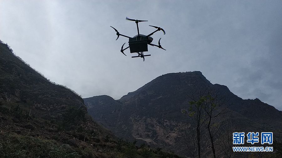 11月29日,邮政无人机缓缓起飞。新华网记者 李志强 摄