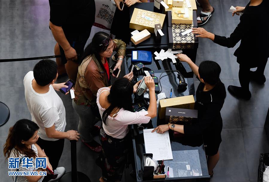 12月1日,游客在三亚国际免税城排队付款。 自2018年12月起,海南离岛免税购物政策施行新规,年度离岛免税限额由1.6万元增加至3万元。 新华社记者 杨冠宇 摄