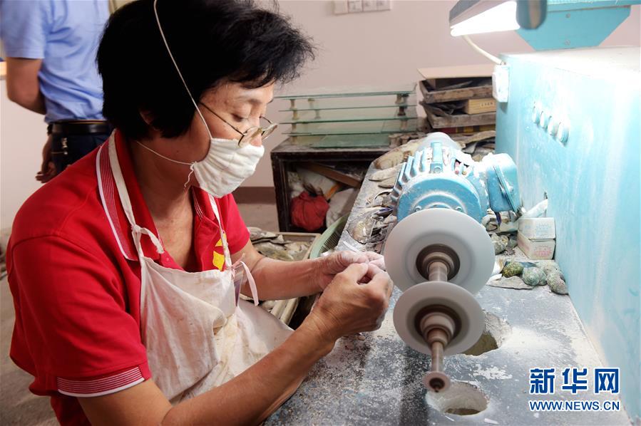 工作人员在广西北海市合浦县一家珍珠加工厂加工珍珠(2016年5月3日摄)。 新华社记者 张爱林 摄