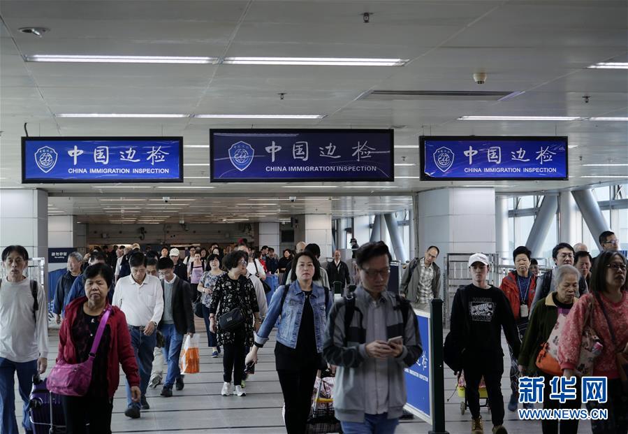 在罗湖人行桥,旅客从香港步入深圳(11月29日摄)。新华社发(王申 摄)