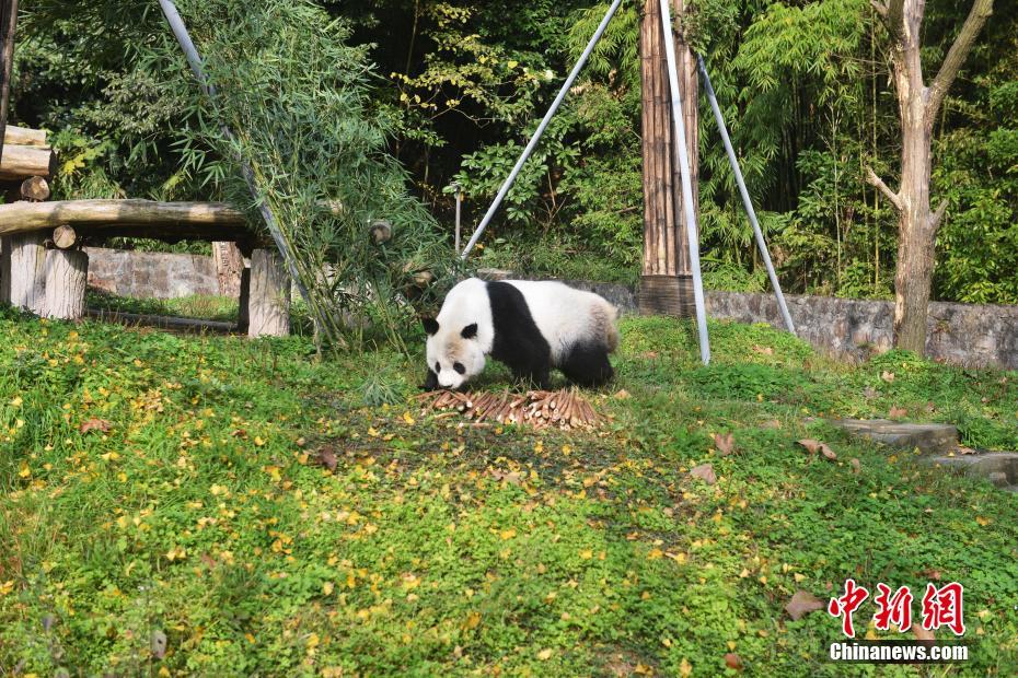 海归大熊猫“高高”在新家玩耍。 李传有 摄