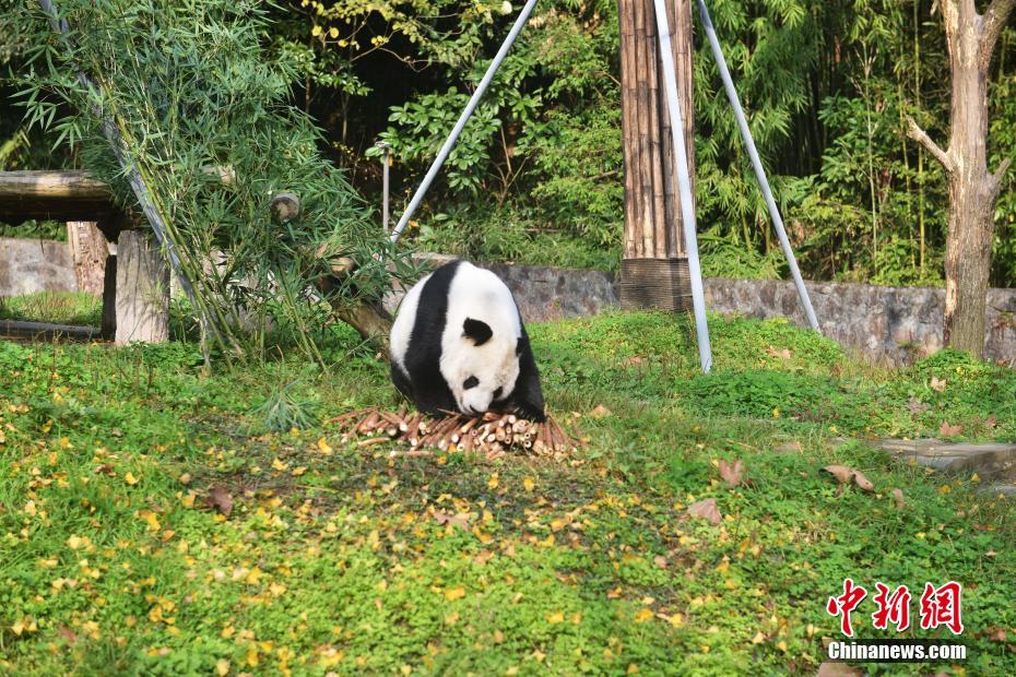 海归大熊猫“高高”在新家玩耍。 李传有 摄