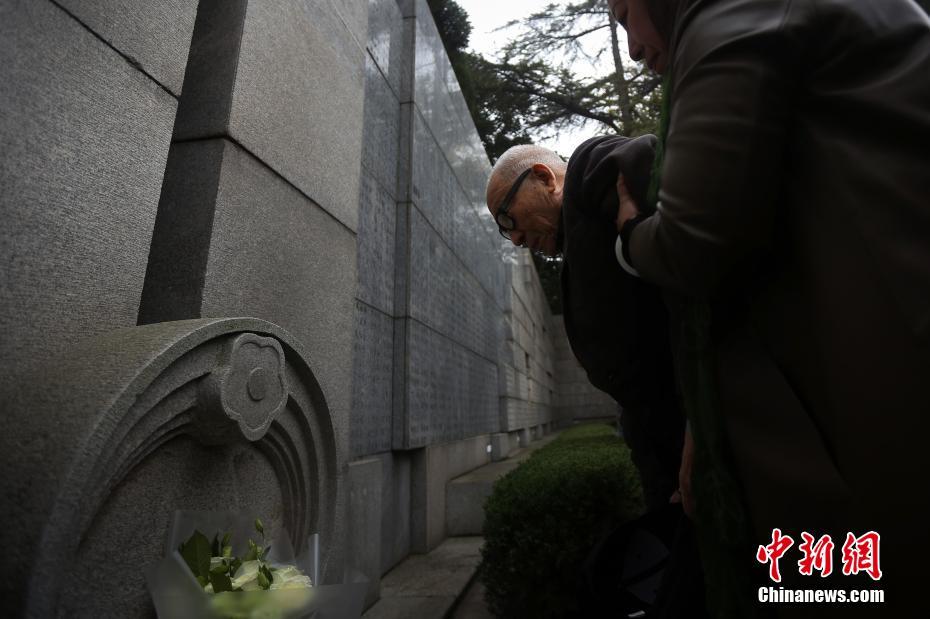 12月3日,南京大屠杀幸存者余昌祥和他的家人祭拜遇难亲人。当日,南京大屠杀死难者遗属家祭活动正式启动,遗属们通过在侵华日军南京大屠杀遇难同胞纪念馆“哭墙”(遇难者名单墙)前献花、敬香、跪拜和诵读家信等形式,表达自己的哀思。 中新社记者 泱波 摄